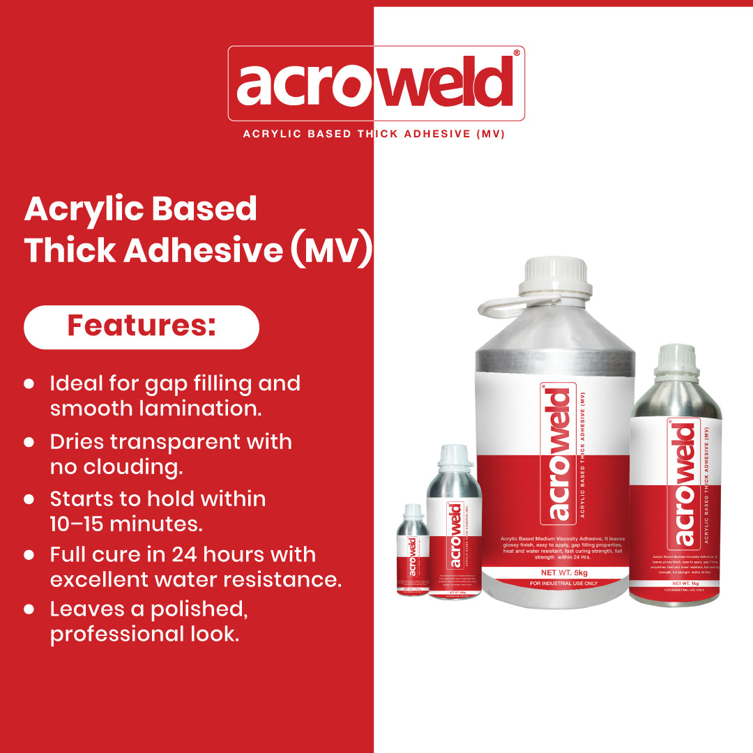 Acroweld (MV) is a medium viscosity, acrylic based thick adhesive crafted for bonding acrylic sheets and select...