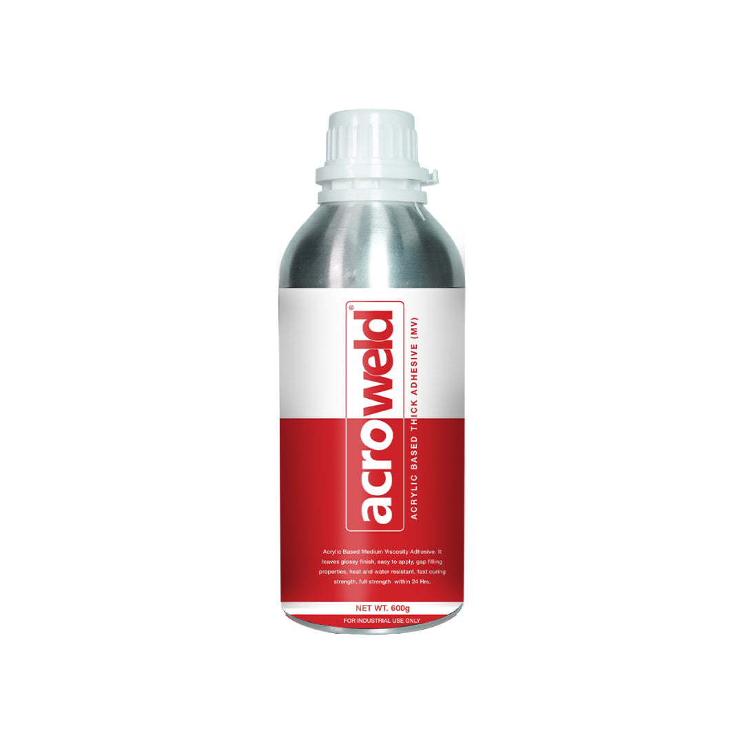 Acroweld (MV) is a medium viscosity, acrylic based thick adhesive crafted for bonding acrylic sheets and select plastics like PC, Nylon, and ABS. With its syrup-like consistency, it’s perfect not only for standard acrylic-to-acrylic bonding but also for minor gap-filling applications (up to 2–3 mm). It offers an early tack in 10–15 minutes and achieves full bond strength within 24 hours, leaving a durable, glossy finish.