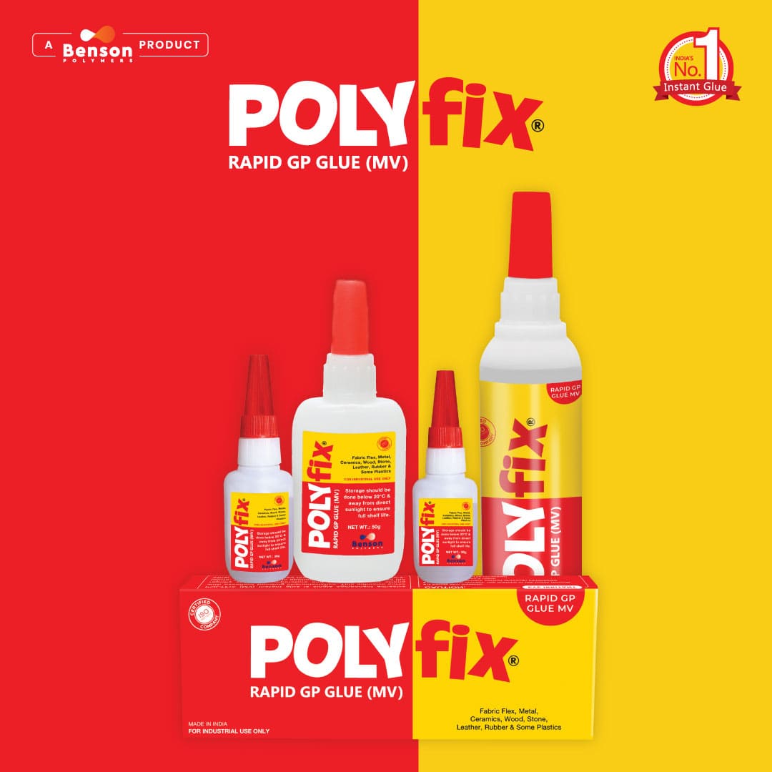 Polyfix Rapid GP Glue (MV): Turant Chipkao, Mazboot Chipkao - The No. 1 Instant Glue for Strong Bonds. This strong and fast-drying glue dries in just 1-4 minutes and holds tight. You can use it in different industries for lots of jobs, but it's especially good for things like rubber O-rings, air and oil filters, and fixing logos. This glue is a bit thicker, so it won't drip or spread when you use it. It's great for jobs where you need to fill tiny gaps, and it dries quickly. It works on surfaces that can soak up the glue and on surfaces that can't. You'll find it in easy-to-hold squeeze bottles. To use it, just put the glue on one surface, then line up and press the second surface onto it. Hold it in place with your hand for a few minutes, and it will stick well.